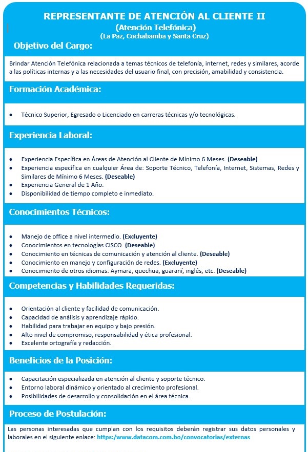 REPRESENTANTE DE ATENCIÓN AL CLIENTE II